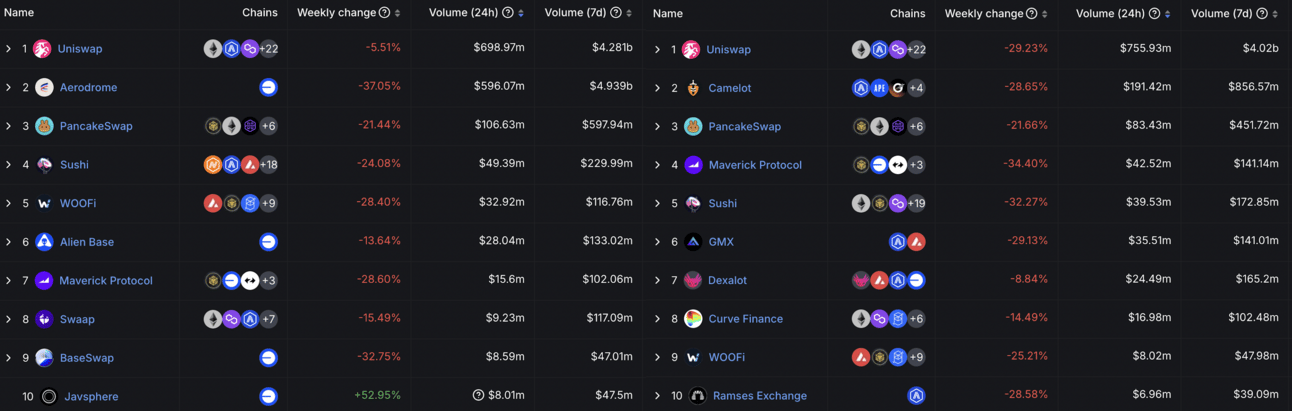 Here’s how Arbitrum and Base’s top 10 DEXs compare: