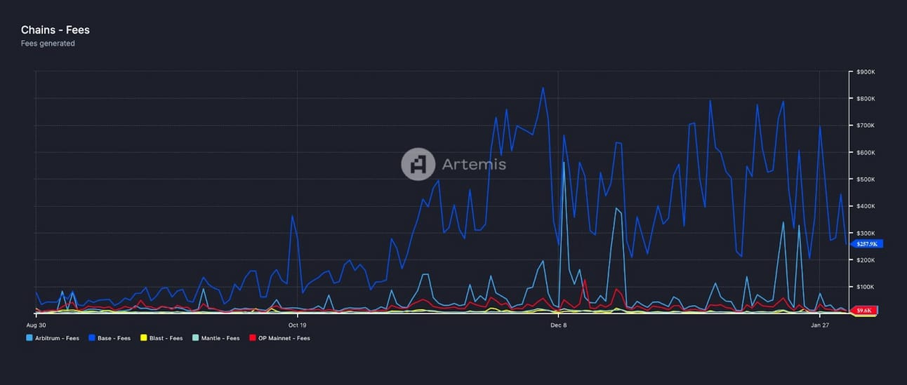 When analyzing the fees generated by Base and Arbitrum, the contribution of a higher base fee becomes evident.