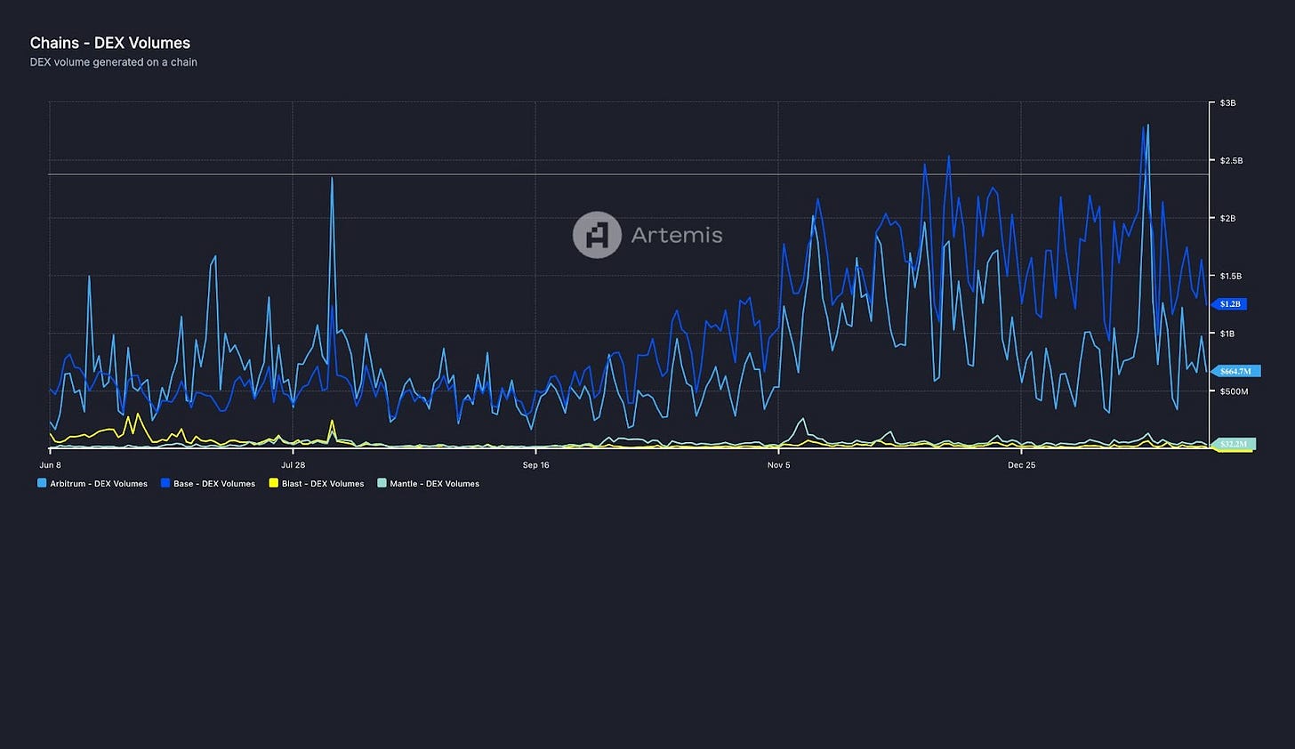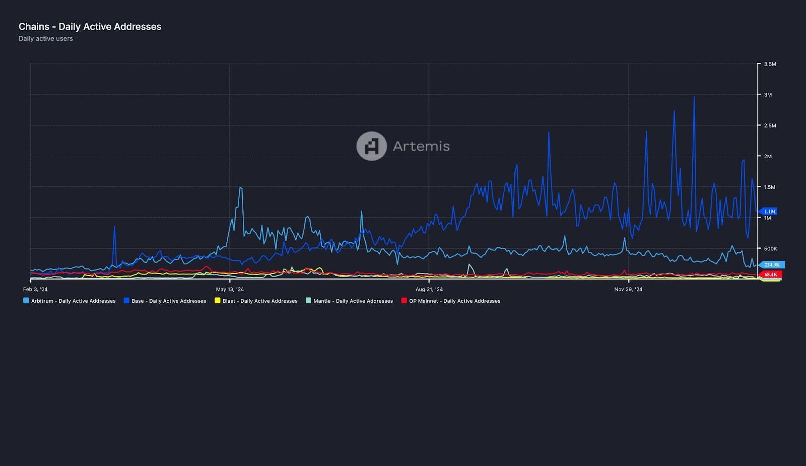 Arbitrum has firmly established itself as a leading Layer 2 solution, driven by its superior tech stack, a robust DeFi ecosystem, and strong user adoption. However, the landscape introduces new challenges as competitors like Base, Optimism, Mantle, and Blast continue to gain traction.