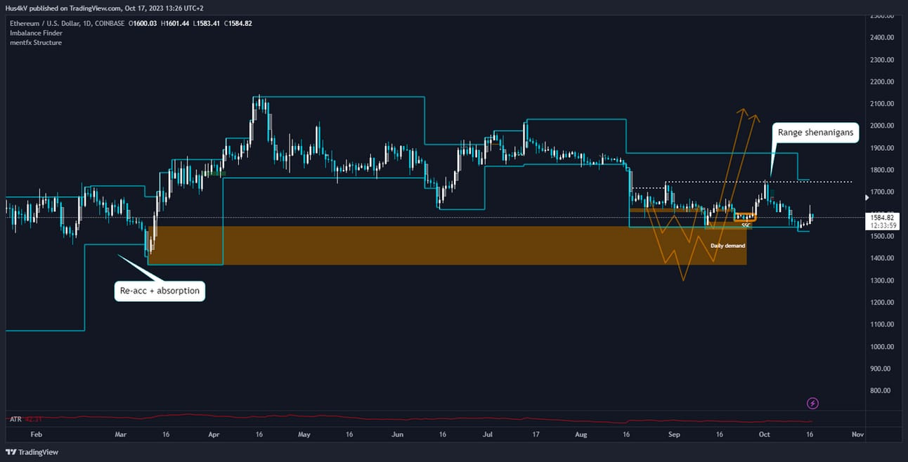 The range shenanigans continue. I am still waiting for a proper bullish push to jump on, but it is nowhere to be seen. For the record, I won’t even look at a long order until ETH breaks the at least 1800 and even then I’ll want to see very specific things. We’re far from that.