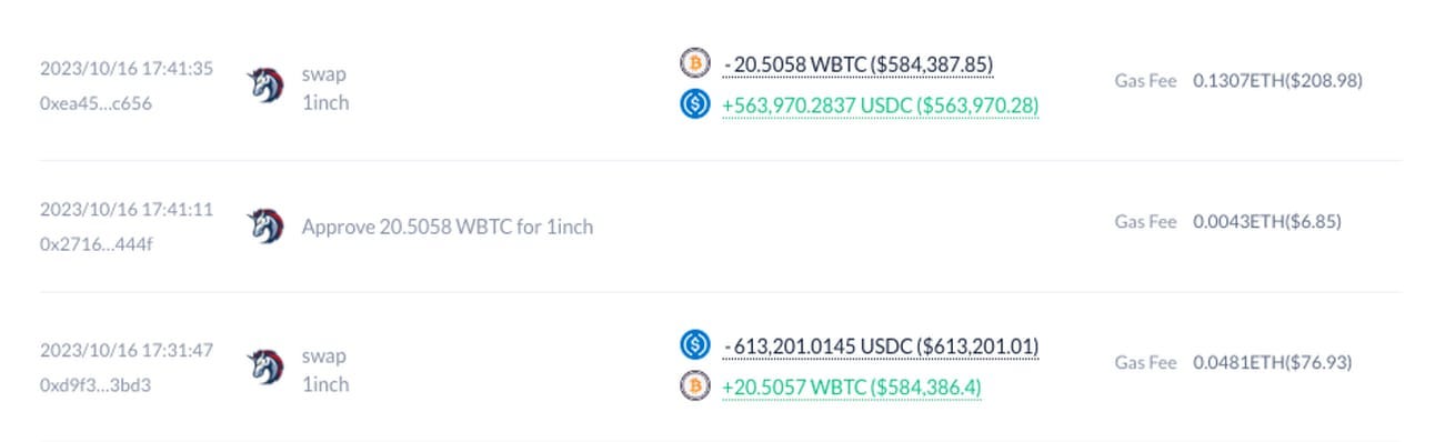 See, Mister Fomo’or couldn’t contain his excitement during the fake announcement and he immediately bought 613k USDC of wBTC once the news came out.