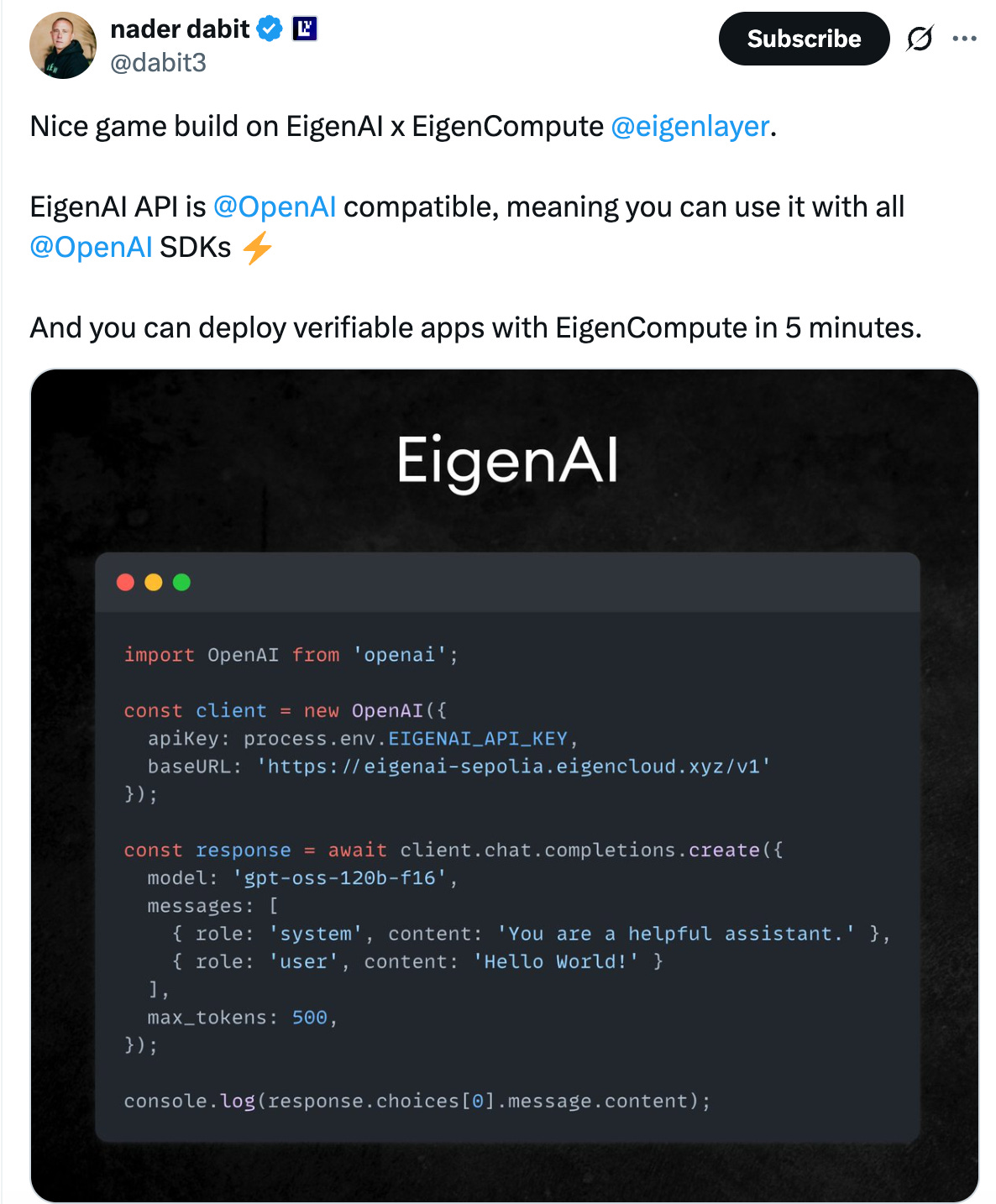 Plus, someone built a game using EigenAI x Eigen Compute!