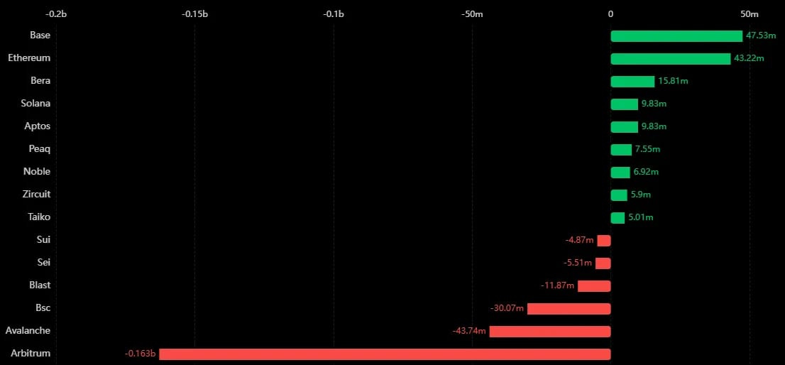 Last week we saw significant inflows into Arbitrum and huge outflows out of Base. This week, we can see the exact opposite. Overall the numbers aren’t anything out of the ordinary, just regular capital flow.