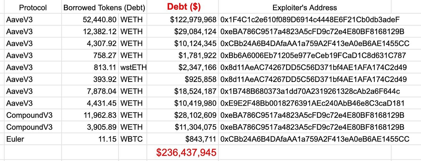 RPCs are data feeds that provide LayerZero’s verifier with updates on each blockchain. The verifier trusts those feeds to determine whether a cross-chain message is legitimate and takes action accordingly. The LZ verifier signed a message claiming that rsETH was burnt on Unichain, even though it never actually happened, causing the OFT bridge to mint. After this unbacked mint, the attacker deposited these funds into protocols such as Aave, Compound, and Euler, borrowing WETH and other assets against them, while also selling some of it on Uniswap and Fluid DEX pools, bringing the net extracted value to ~$245 million.