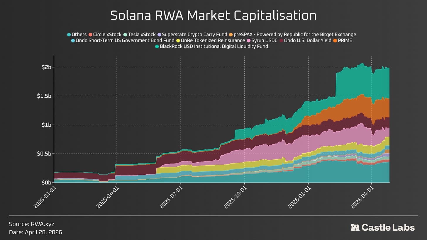 Whilst Ethereum was scrambling to save its DeFi ecosystem from catastrophe, Solana has been hitting positive headlines since the Drift exploit earlier in the month. In the past 12 months, RWAs on Solana have grown from $170M to $2B (excl. stablecoins) as holders on the chain crossed 192,000. Meanwhile, SOL ETFs cleared $1B in cumulative total net inflow in the last two weeks, with large positions held by Goldman Sachs, Morgan Stanley, VanEck, and market makers such as Jane Street.