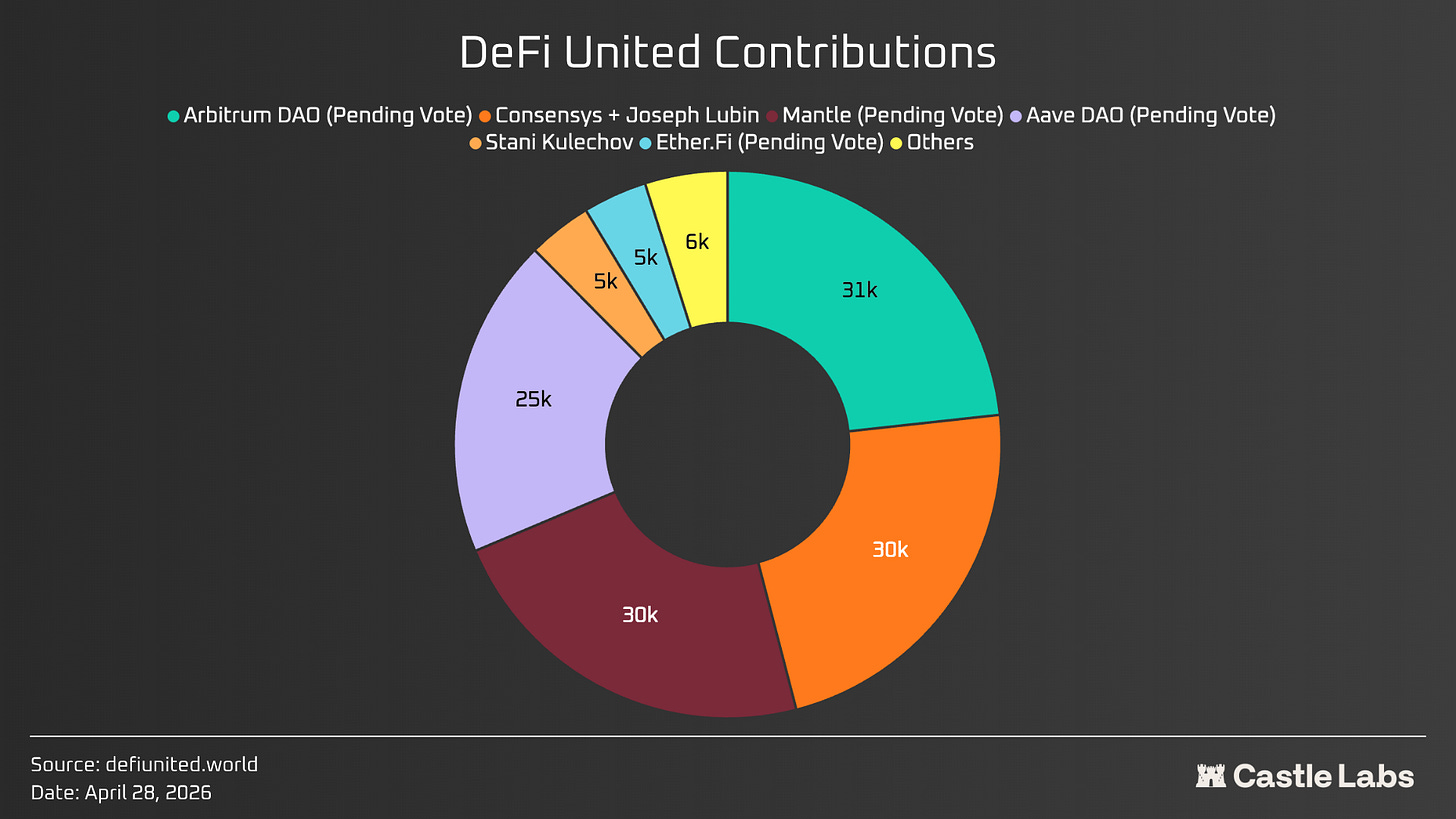 Aave DAO, Mantle, EtherFi, Arbitrum DAO, and others have governance votes, confirming whether DeFi United’s pledges deploy as expected