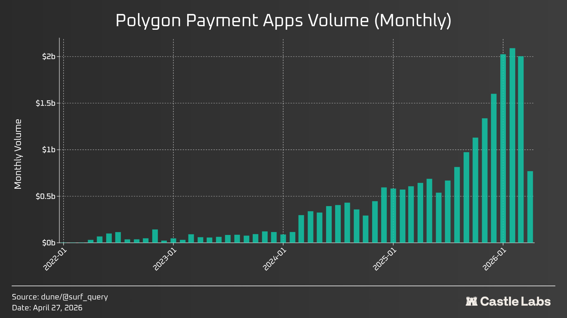 On the other hand, Polygon is positioning itself more as a payment network, with a current stablecoin supply of $3.57 billion. Last month, payment apps on Polygon did $2 billion in volume, led by Tazapay, Paxos, Coinflow, and others. Polygon also has a great representation in P2P transfers for micro, small, and medium-sized payments, often competing with Ethereum and Solana.