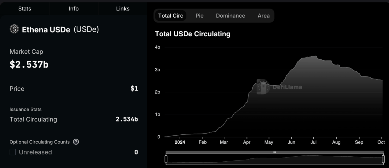Ethena launched the stablecoin USDe in February 2024, and since then, its supply has rapidly grown to over $2.5 billion, with an all-time high of over $3.6 billion.