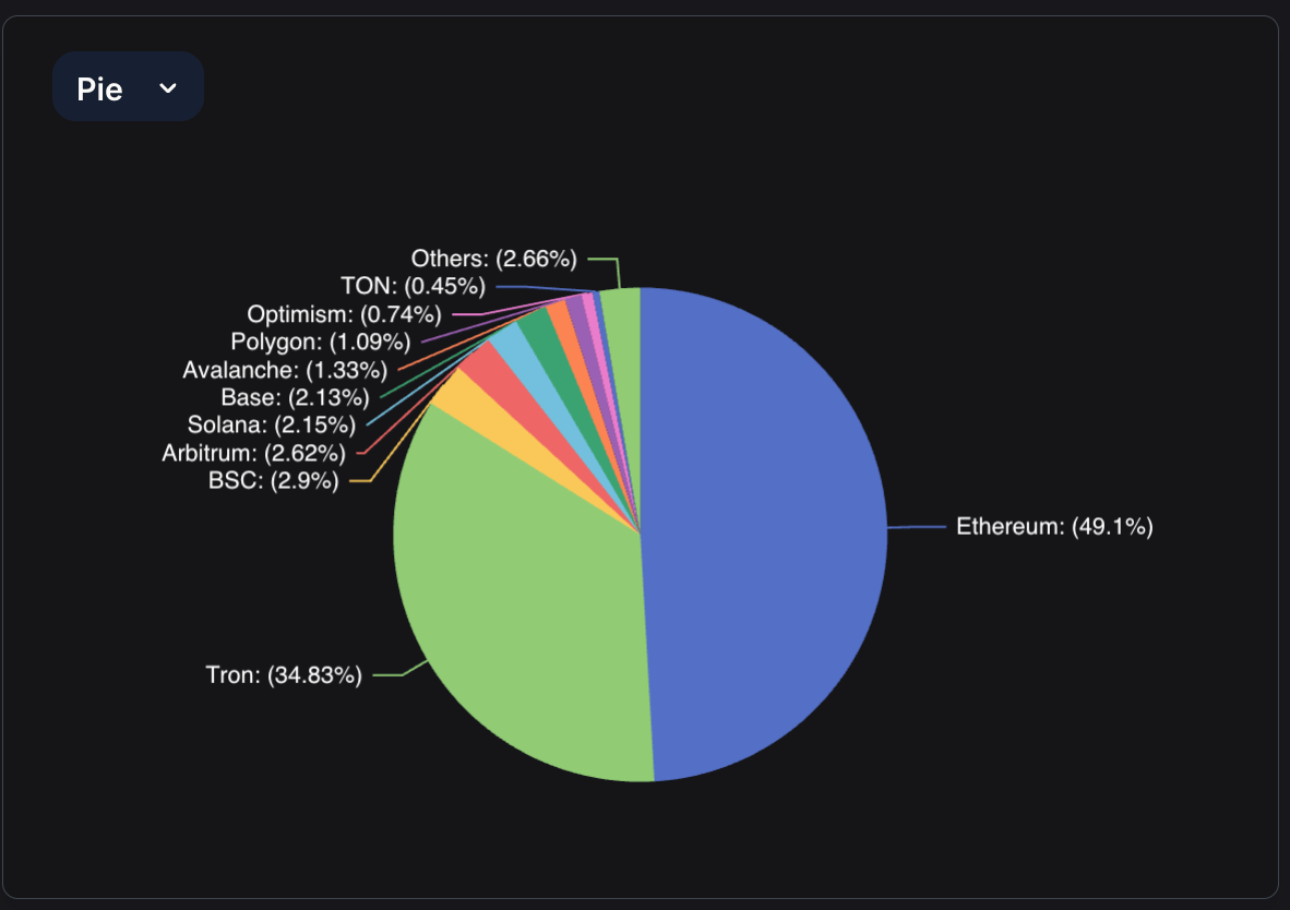 As USDT remains the undisputed leader in the stablecoin market, a similar pattern emerges when we analyze how these assets are distributed across different blockchains, with one dominant leader standing out.