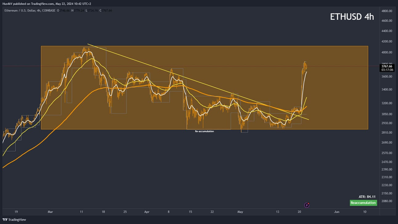 While this is exactly what we were waiting for, this push is really wild and imho overextended. I want to see price go sideways and re-accumulate on these timeframes a little bit before opening any new longs. It’s easy to feel FOMO during moments like these, but patience is of utmost importance.