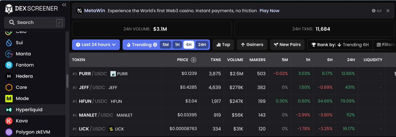 Now they also announced permissionless spot listings (tweet). Besides PURR there are now a few memecoins on the chain, so one could argue that it is already a saturated market.