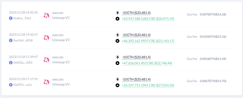 Which funded 0xE517…2563e that has been buying $CRE on the 28th of November. The wallet now holds a $80k position in the token.