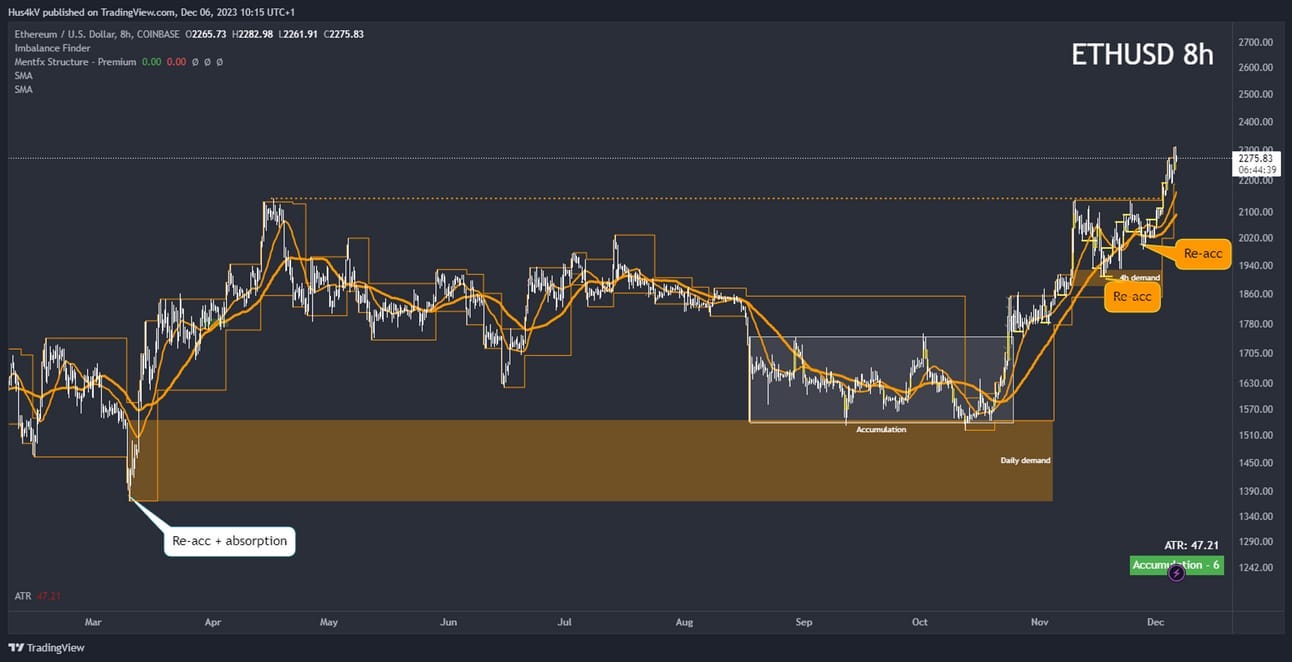 Price has behaved exactly as expected and has delivered a beautiful uptrend. Price is fairly far from its last re-accumulation now, so I’m not sure whether the R:R is there for new longs, but perhaps the lower timeframes still have potential for good entries here.