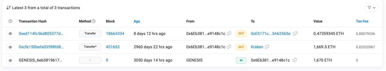 The following address: 0x6eb…48c1c is the genesis wallet.