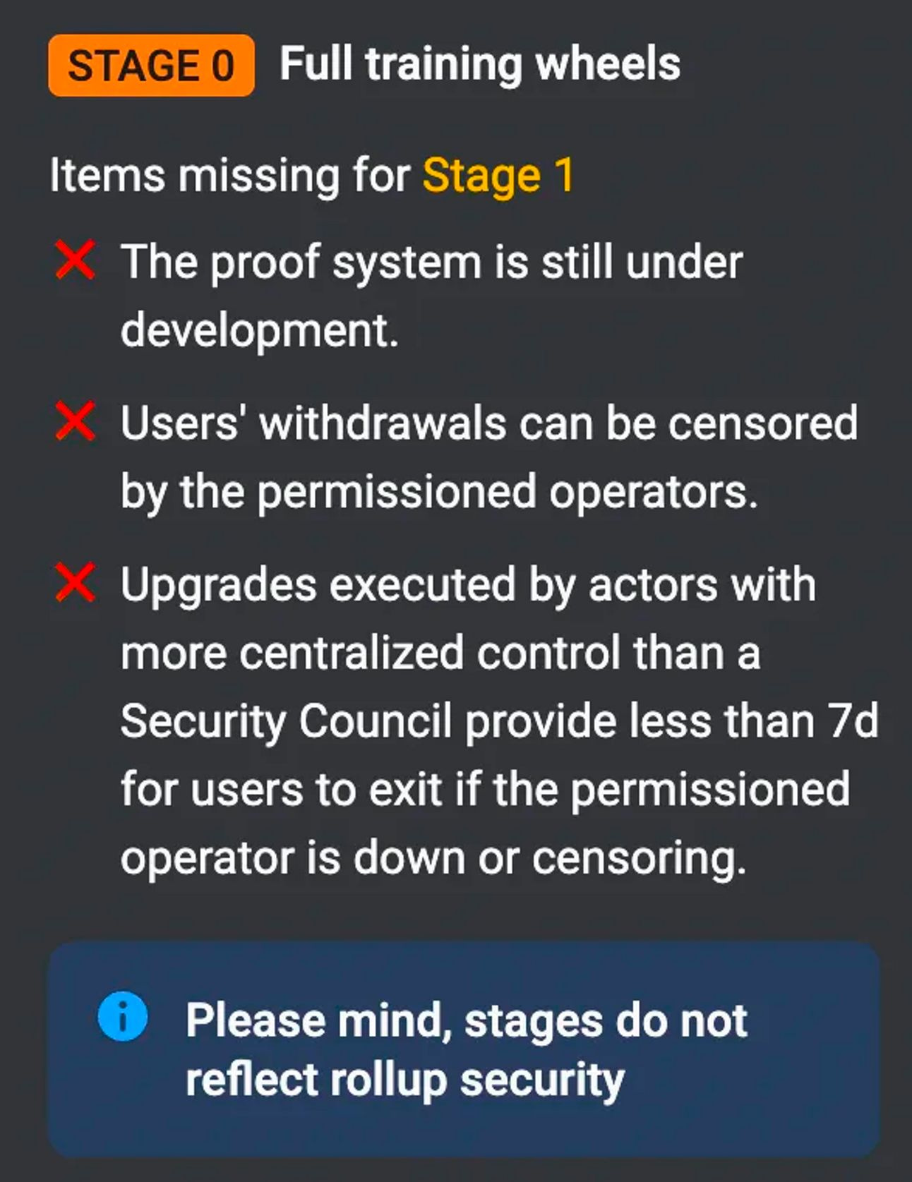 It’s important to mention that at the current state, no rollup is actually more secure than the others.