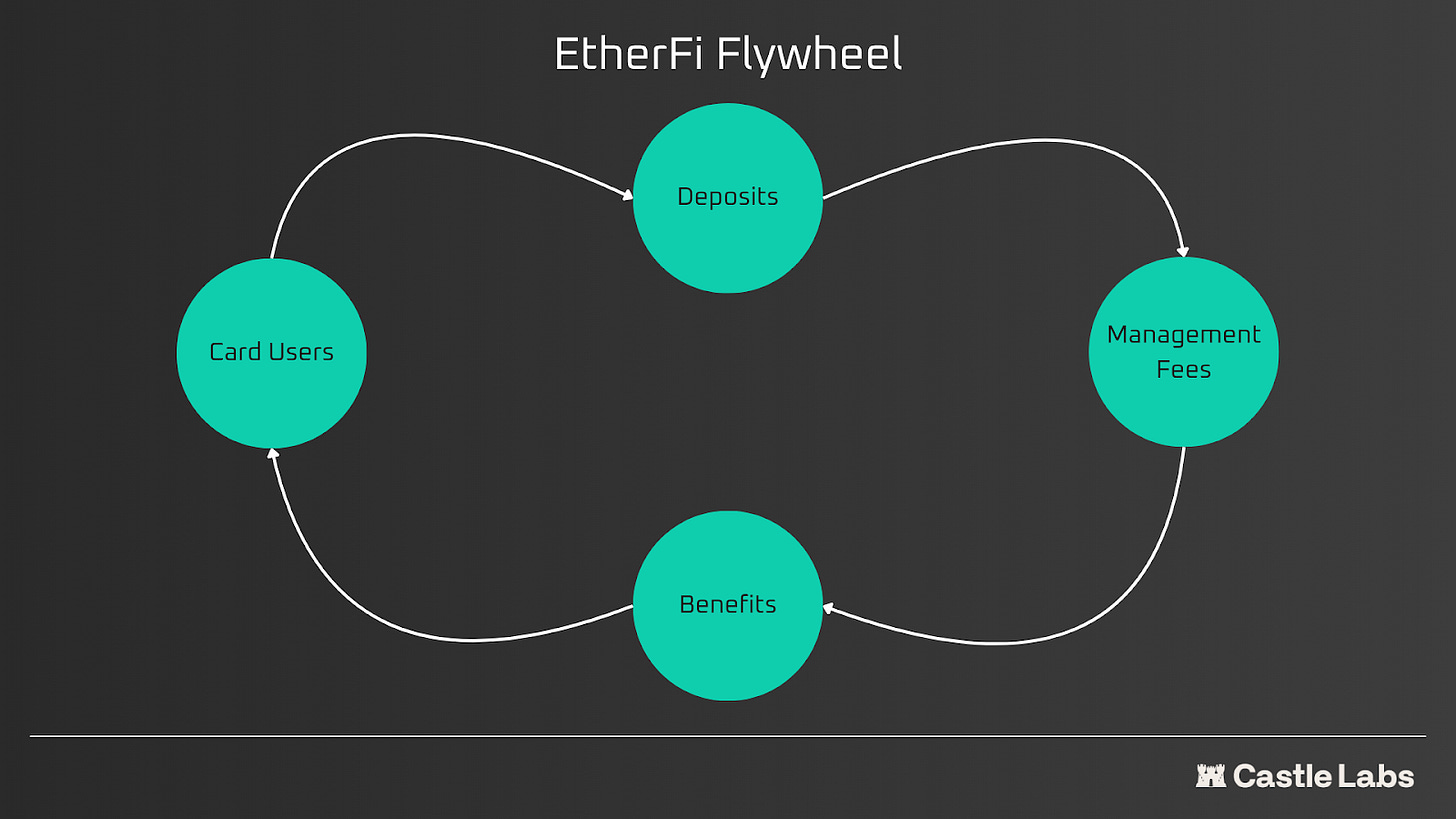 This creates a flywheel: cards drive deposits, deposits drive TVL, TVL drives management fee revenue.