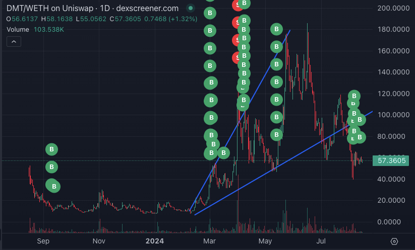 is the biggest $DMT holder on Ethereum mainnet. And as we can see, he has been buying every dip in the last weeks.