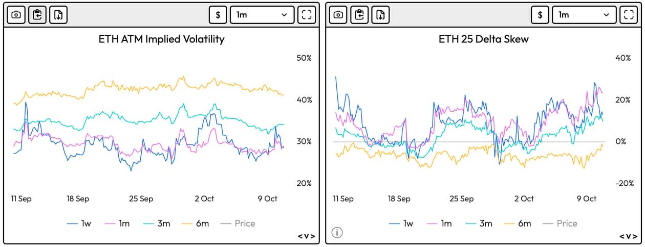 ETH IV and Skews: ETH IVs are markedly lower than BTC’s and after having a lackluster debut on the ETF scene the aggressive large-vol seller returned dropping ETH vols towards the low to mid 30 handle. Skews are all looking bearish as puts are being favored on all expiries except the 6-month expiries.
