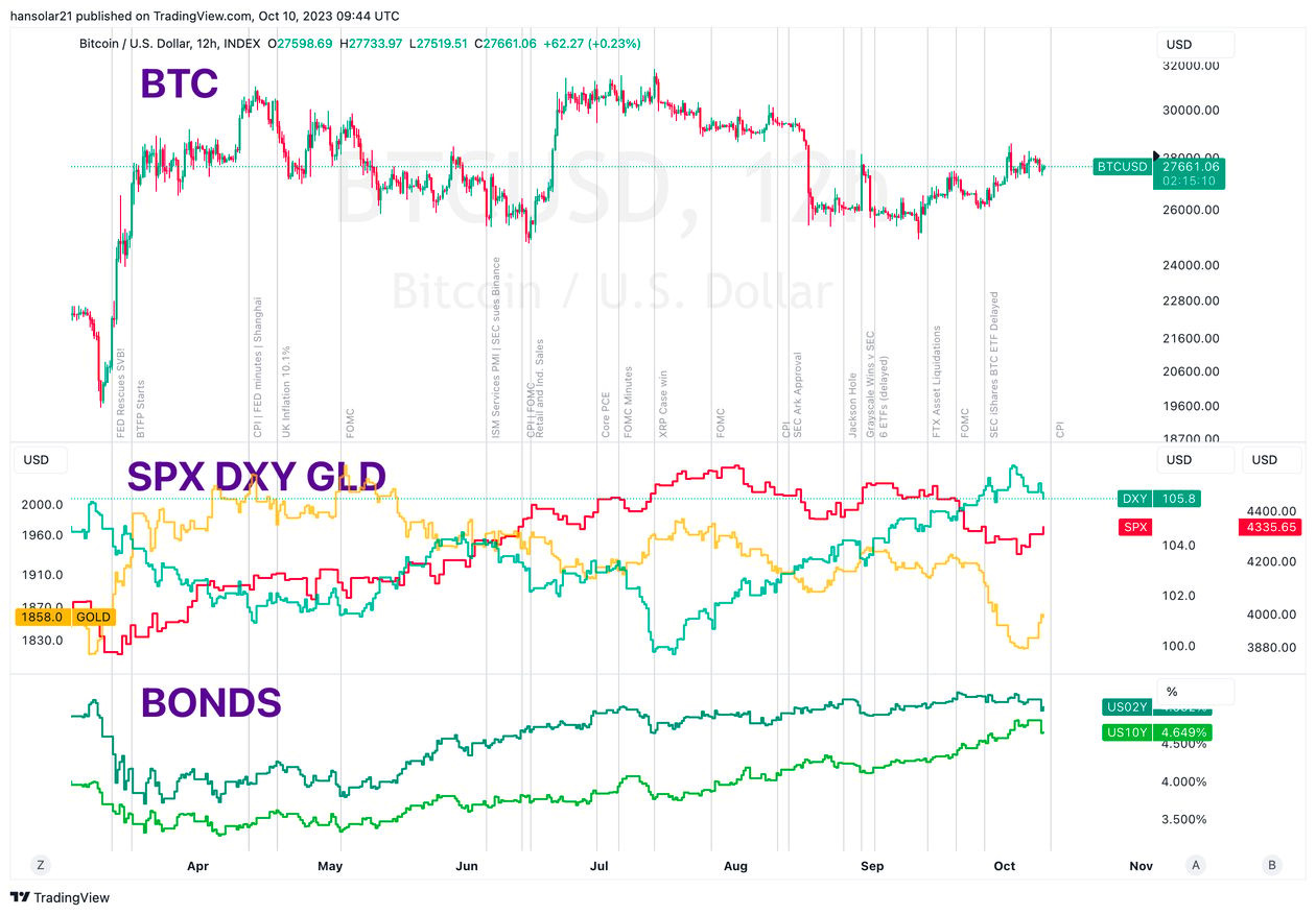 First, the US10Y yields making aggressive moves upwards after the FOMC causing SPX and GLD to drop sharply over the past weeks.
