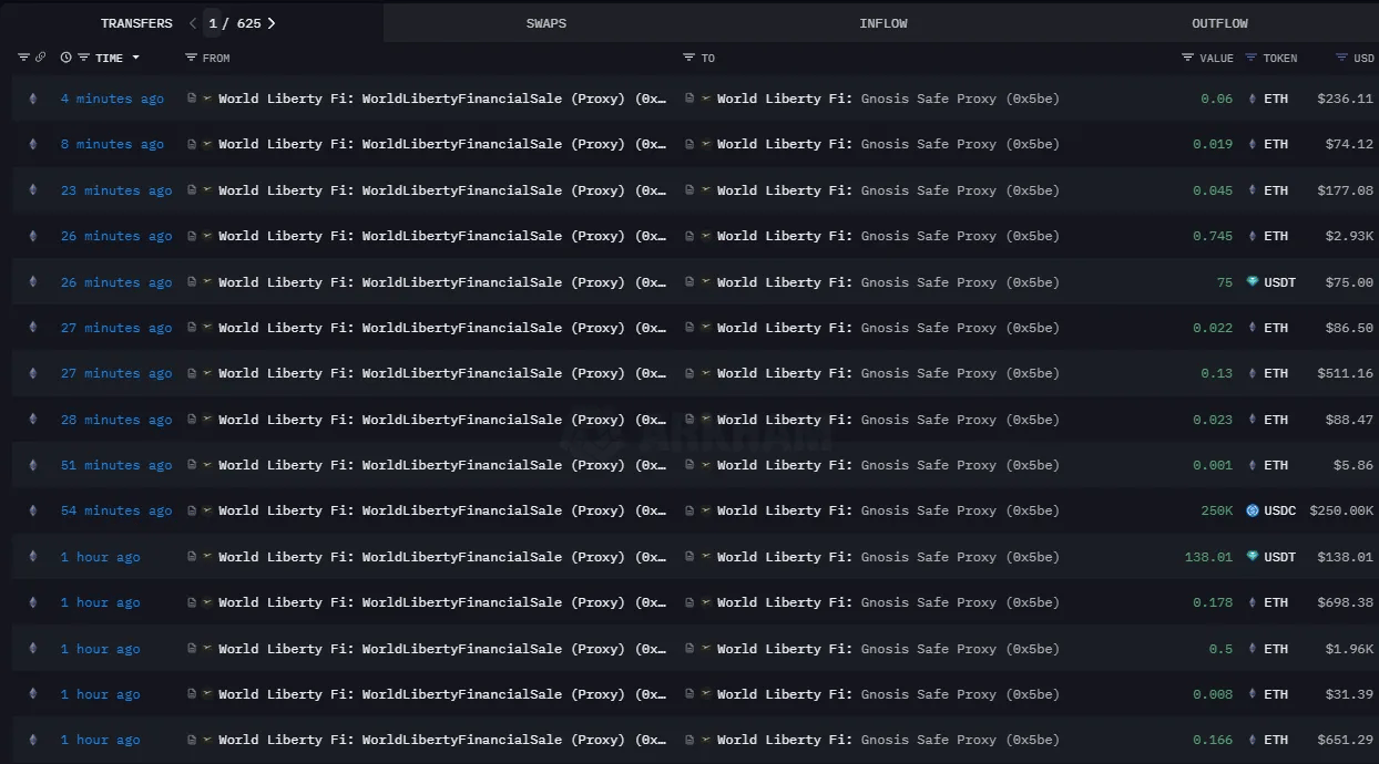 The World Liberty Multisig wallet spent $10 million in USDC to buy 2,631 Ethereum at $3,801 each, $1 million in USDC to acquire 41,335 Chainlink at $24.20 each, and another $1 million in USDC to purchase 3,357 Aave at $297.80 each.