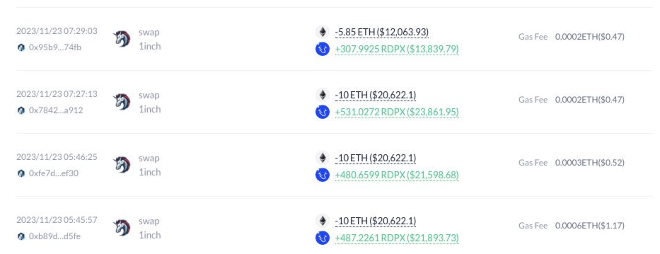 On the 23rd of November Digits invested 35 ETH into $rDPX.