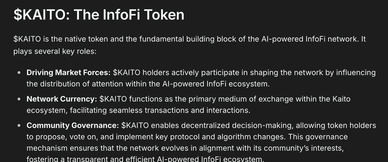 $KAITO will play a critical role in the Kaito ecosystem.