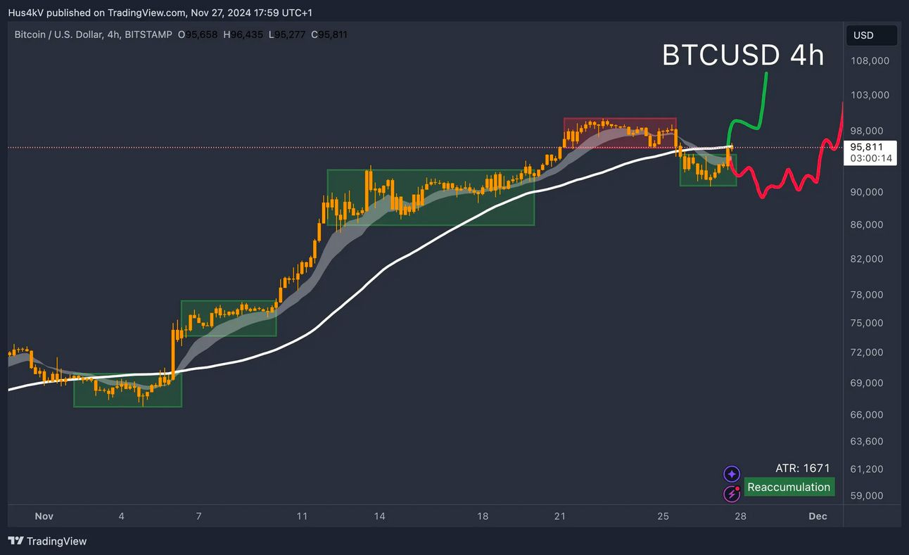 After a nice sustained trend on the 4h we've finally seen BTC breaking down a bit. This to me is a very bullish sign and I’m expecting another re-accumulation. The main purpose of a re-accumulation is for the trend to reset - I’m sure you've heard the saying “you can’t run a marathon forever”, every now and then you go to take a small break to recharge. That’s exactly what the price is doing here, except that instead of recharging on energy, it’s recharging on liquidity.