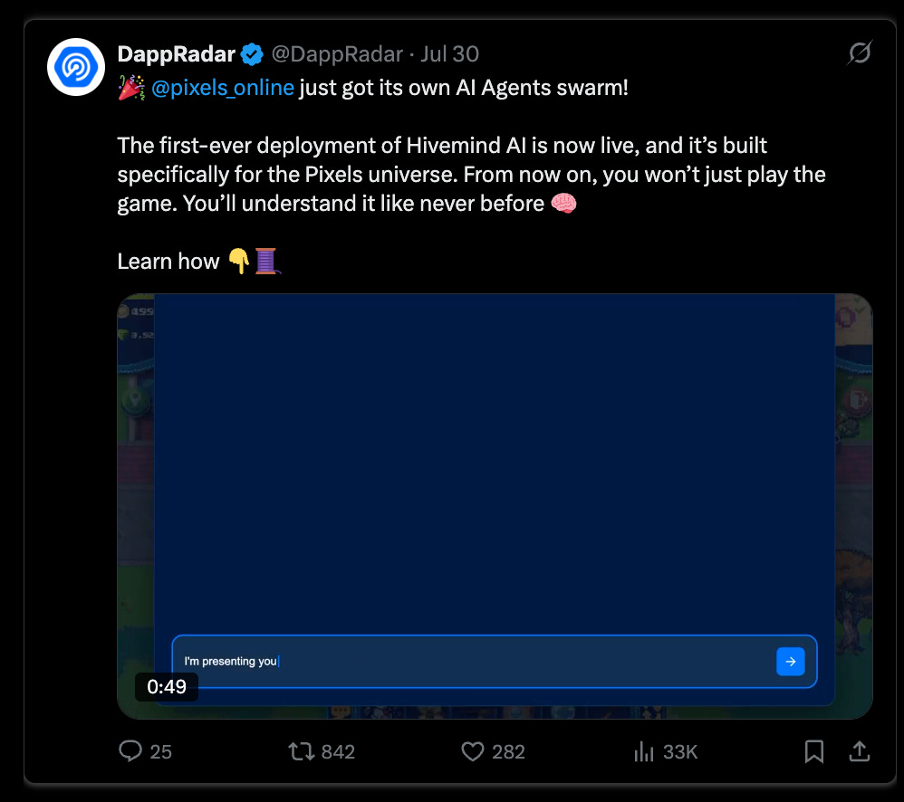 What about more AI features in games? @pixels_online just launched their own AI swarm: