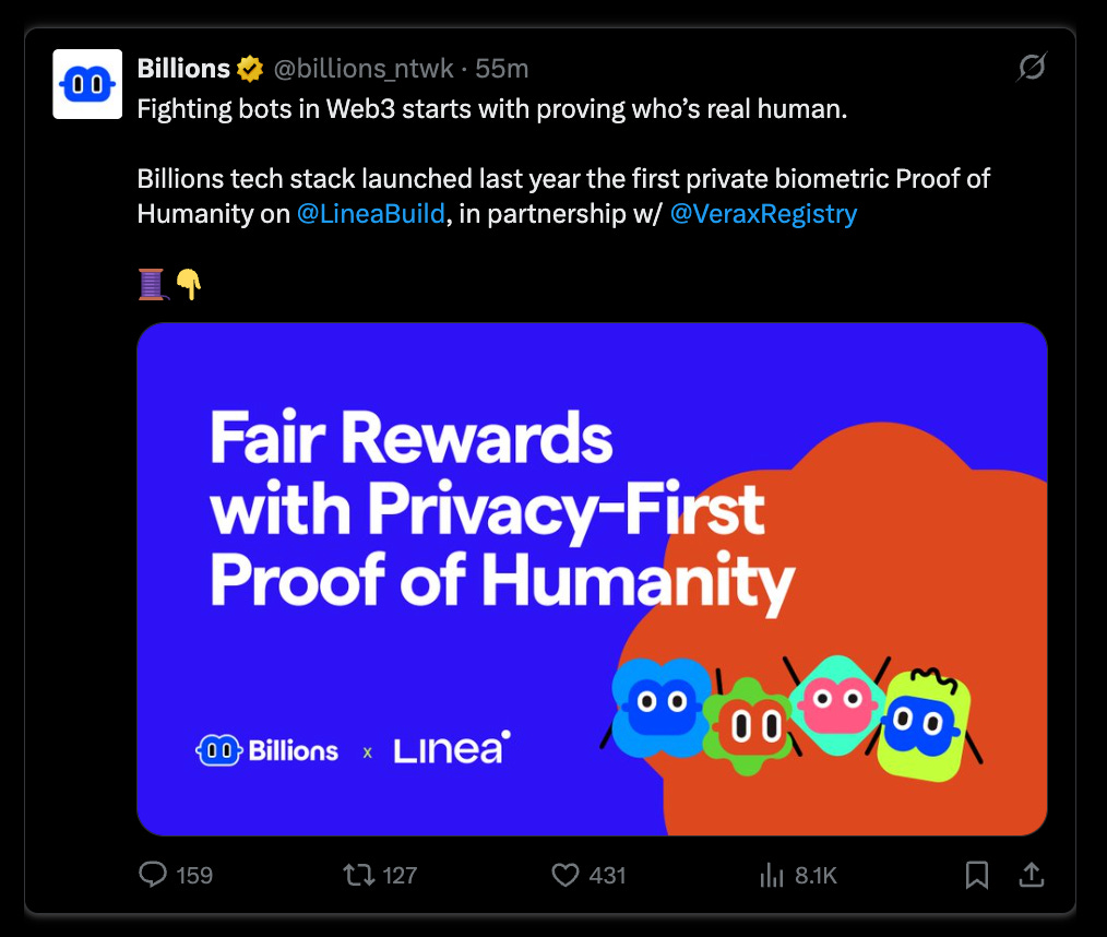 Another interesting example of anti-bot proof of humanity developed by @billions_ntwk: