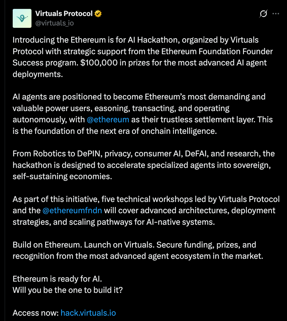 In other Virtuals news, they are launching a big hackathon with over $100k in prizes.