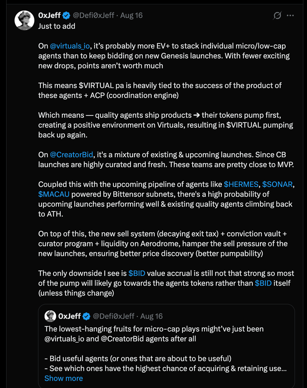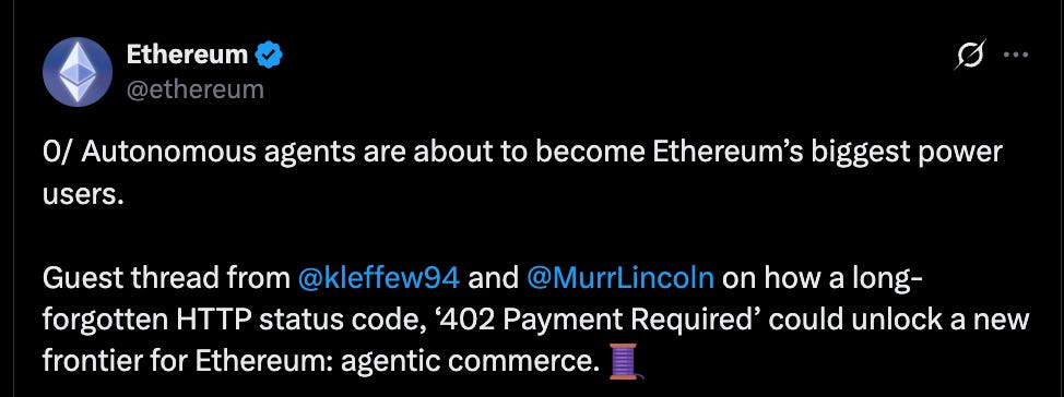 While we mostly cover agents within the Base/Solana ecosystem, it’s great to see the official Ethereum account sharing more about their vision for AI agents on mainnet: