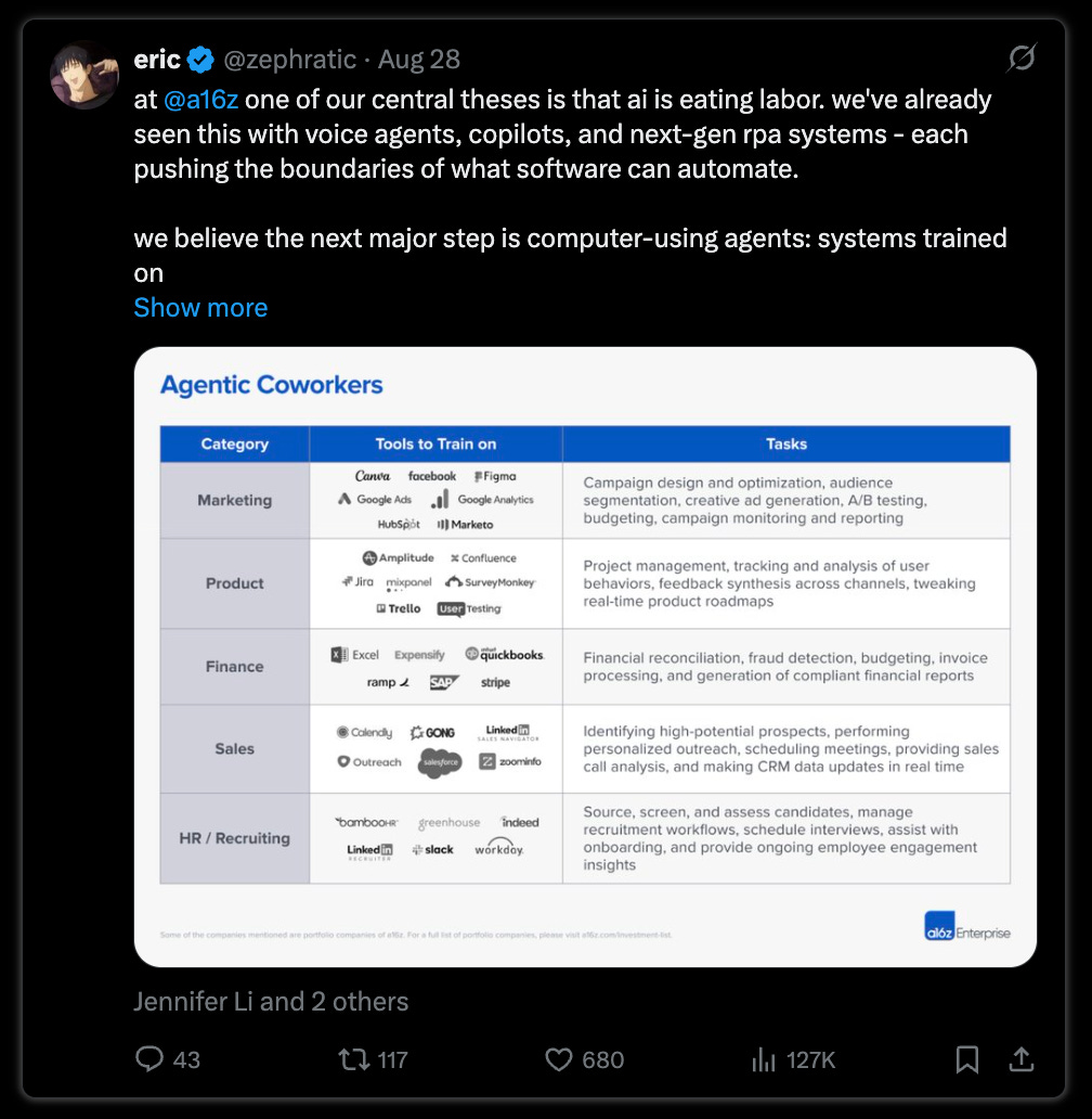 We also want to highlight @a16z thesis on AI agent workers: