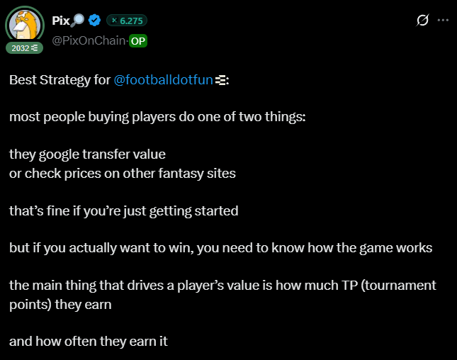 I’m currently playing this game mainly because it’s the first football manager I actually enjoy, as it blends market dynamics, sports, and onchain all together.