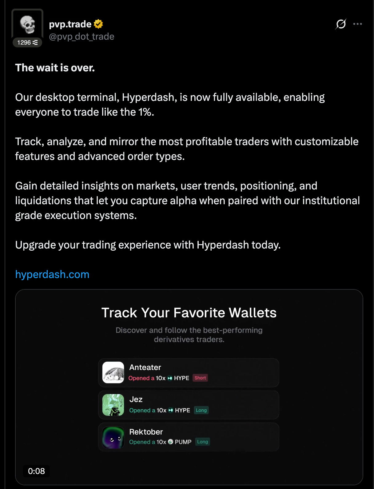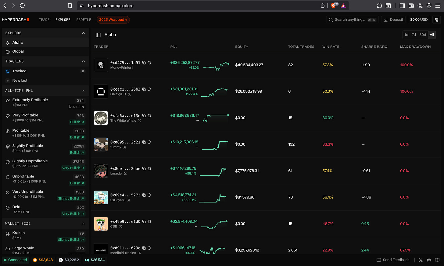 After acquiring it in november, pvp has really taken the Hyperdash platform onto whales & power user tracking on the Hyperliquid orderbook.
