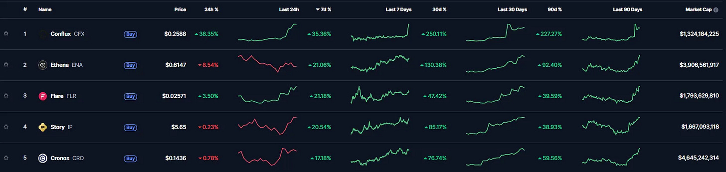 I’m happy to see some L1s and DeFi in the mix again. The TOP 5 has been a bit more diverse lately, compared to the old 4/5 being memecoins, and I believe that’s a good thing.