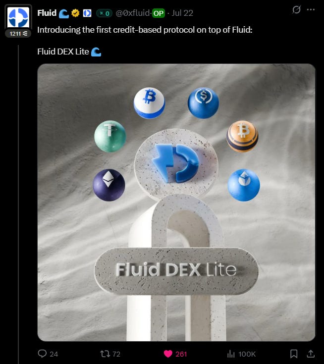 Through this move, Fluid aims to drive more volume through its DEX and capture additional market share from DEXs like Uniswap, Ekubo, etc.