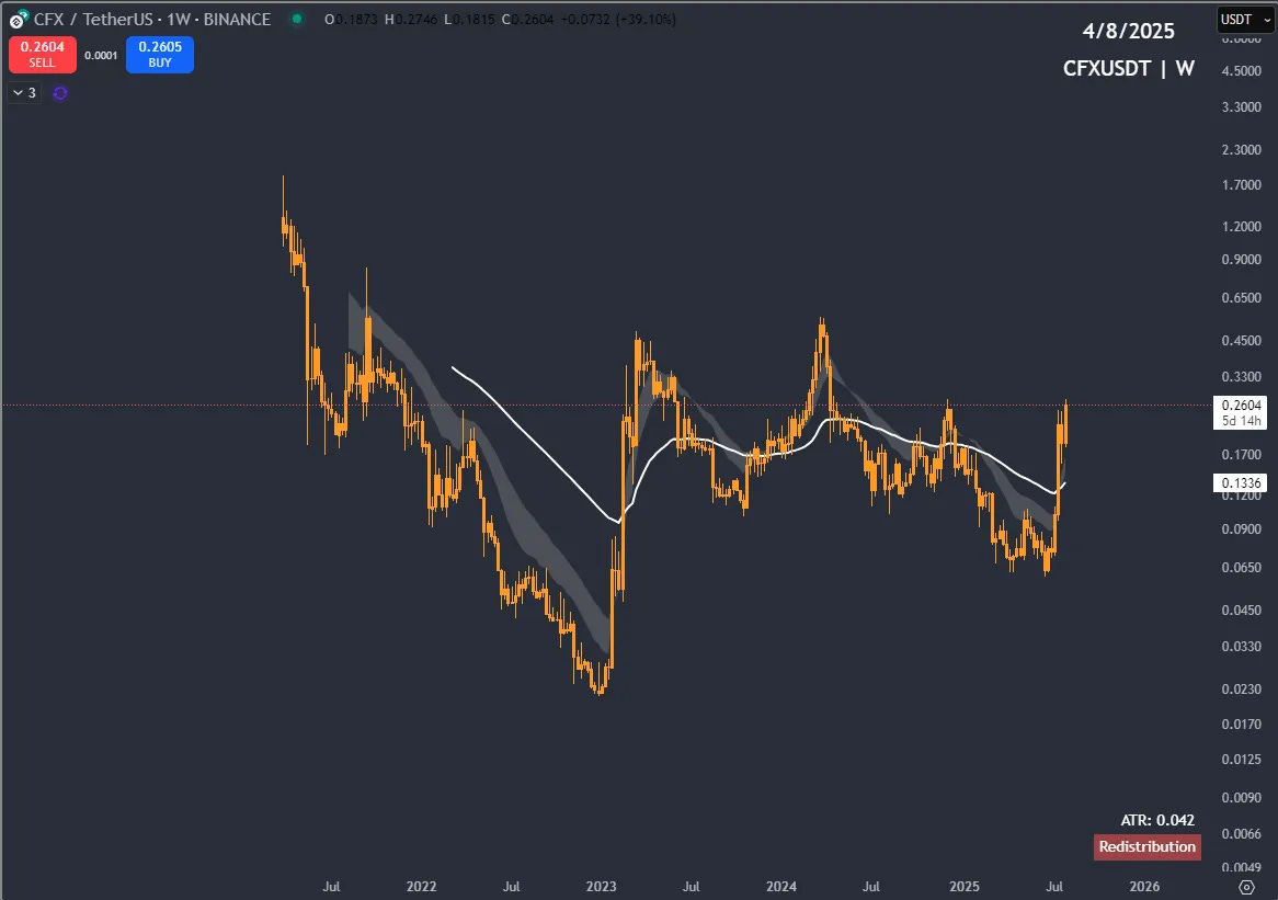 The biggest winner this week is without a doubt $CFX. Unfortunately, when I take a look at the weekly chart, it’s a similar story to many other cryptos - it’s not a trending market yet. That’s why most of these pumps are fairly unpredictable, at least from a strictly TA-based perspective.