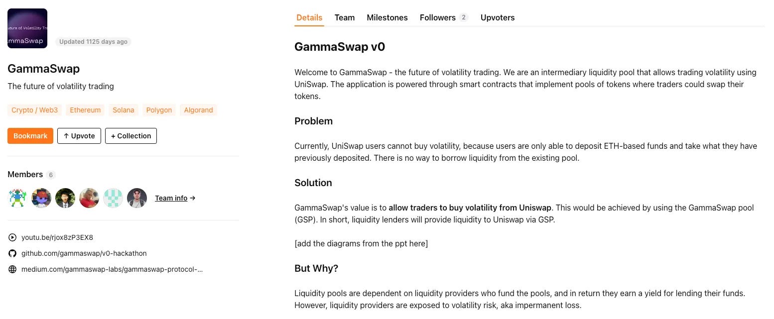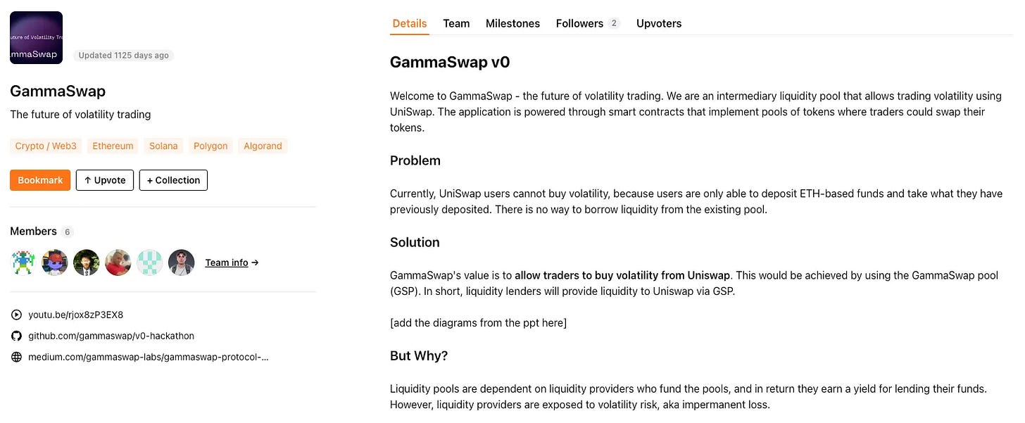 When I joined the hackathon, it was as a judge on behalf of Figment, a non-custodial PoS infrastructure company catering to institutional clients. I thought GammaSwap was interesting because I had provided liquidity across various AMMs. Although I was quoted extremely high APYs, I was often unprofitable. There was no way to hedge my risk either.