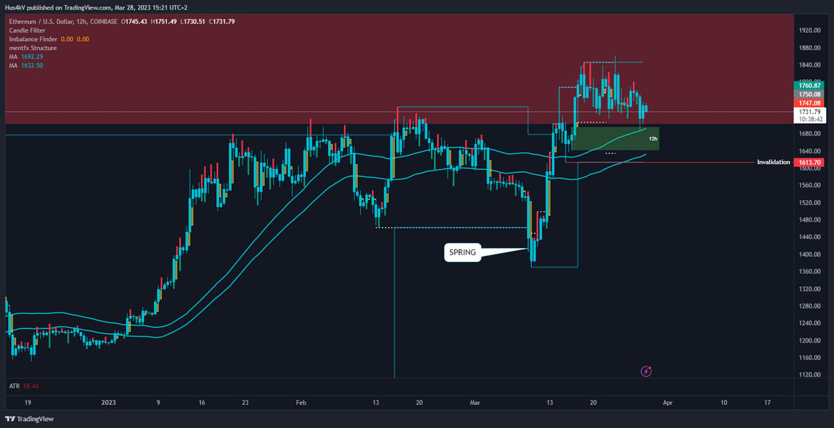 Last week I wanted to see price bounce from this demand zone to break into new highs. We took a little nosedive under the demand zone but quickly reverted back. I decided to take a look at a slightly higher timeframe to maybe check for a better S/D and found this nice-looking 12h.