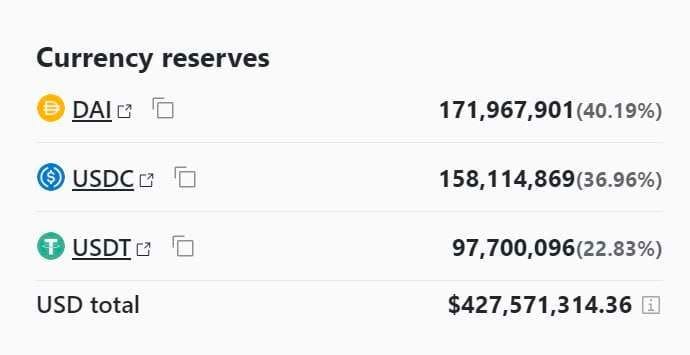 Have been seeing some FUD about USDT on the timeline, but on-chain data doesn't confirm this FUD. The USDT reserves in Curve's 3pool is still lower than USDC and DAI, so it's in a good shape.