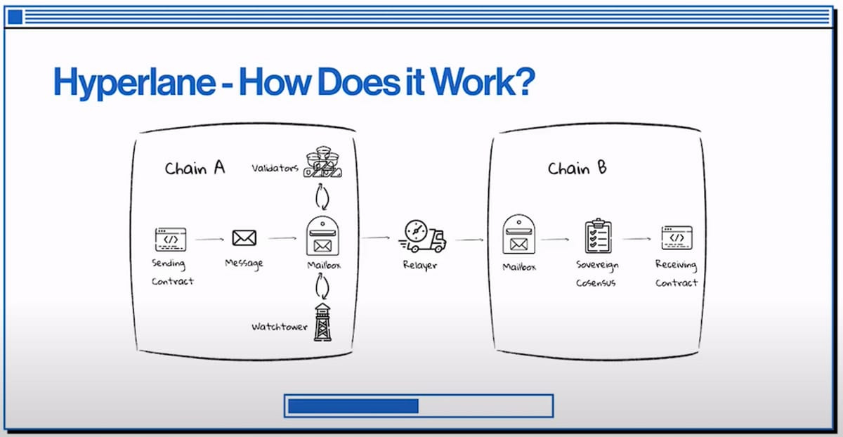 Here he explains how we need a permissionless layer of interoperability. A network of networks. But interoperability nowadays is never permissionless. This is where Hyperlane helps and can be deployed between two environments that want to communicate between them: