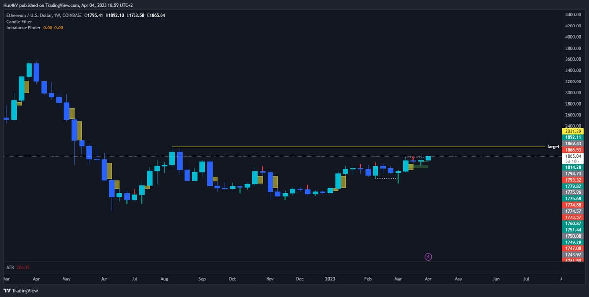 Looking at the weekly chart it makes sense to me to liquidate the swing high at around 2k. I think that’s a good target for the upcoming weeks.