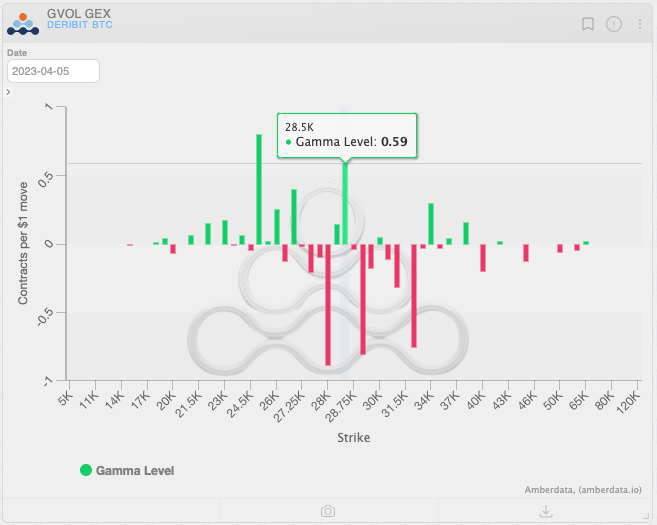 For BTC, 28.5k may act as support while 29k can act as a pull zone. Dealers are heavily gamma negative here meaning as price moves towards 29k, they will have to long delta to stay delta-neutral.
