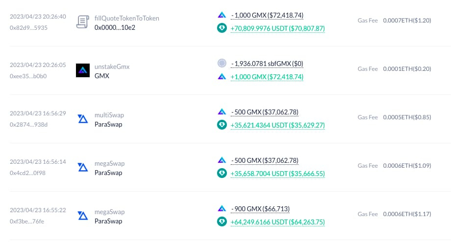 Appodial selling GMX for USDT.