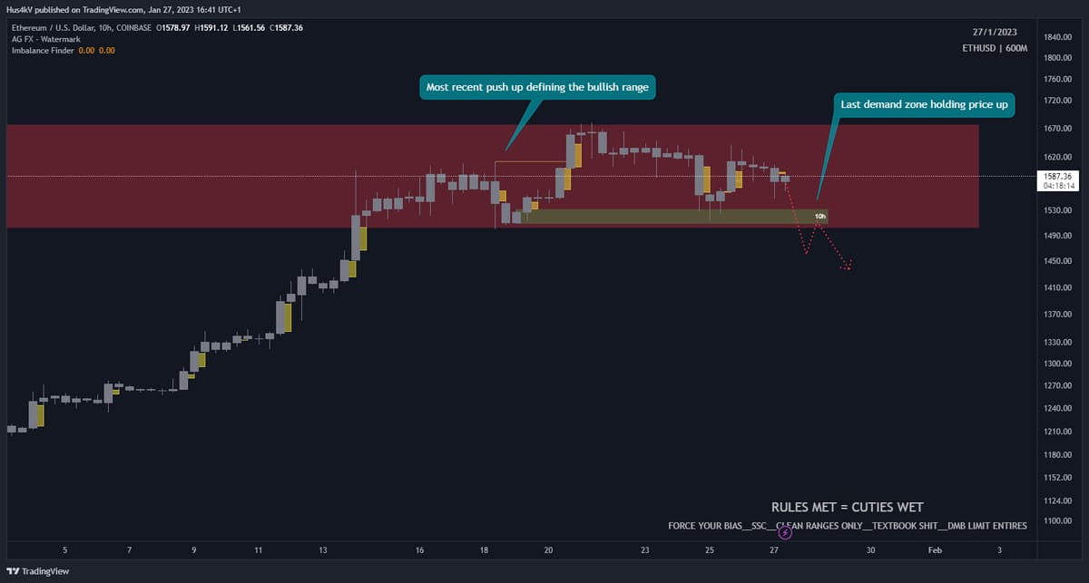 The invalidation is the 10H demand zone followed by a valid pullback and another breakdown showing us clear intent and orderflow to the downside. Once that happens we can start looking for shorts.