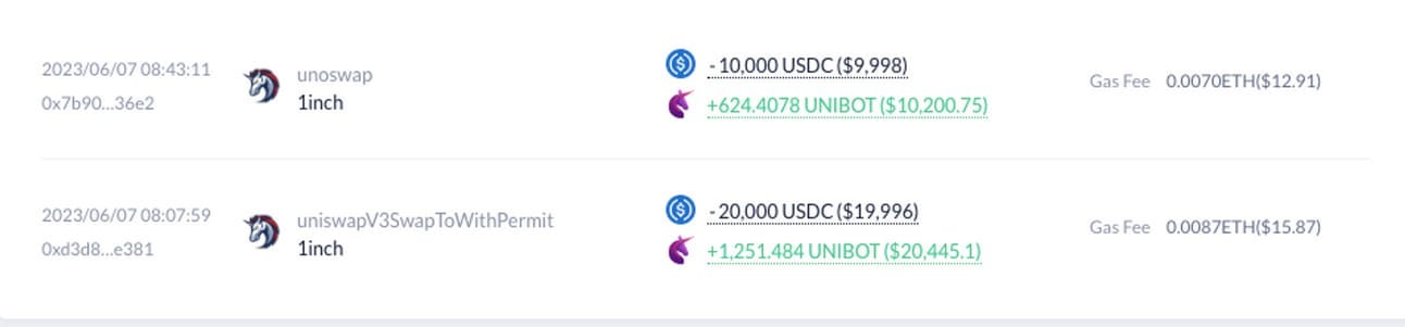 Midget swapping $30k USDC into $UNIBOT.