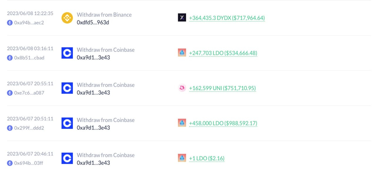 This is not the only coin ARca is bullish on. Last week, another one of their publicly known addresses received $700k worth of $DYDX, $1.2 million worth of $LDO, and $750k worth of $UNI from different CEX addresses. The crypto hedge fund seems to be in buy-the-dip mode and has focused on DeFi bluechips.