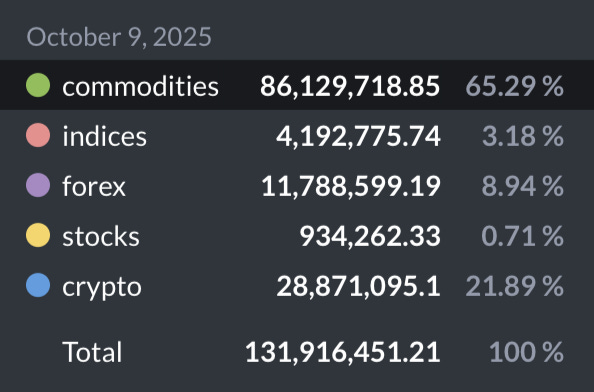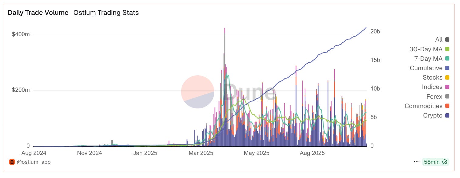 While part of the last spike in volumes is due to the significant liquidation event that occurred on October 11th, Ostium volumes have shown solid growth and have consistently exceeded $130m over the past week.