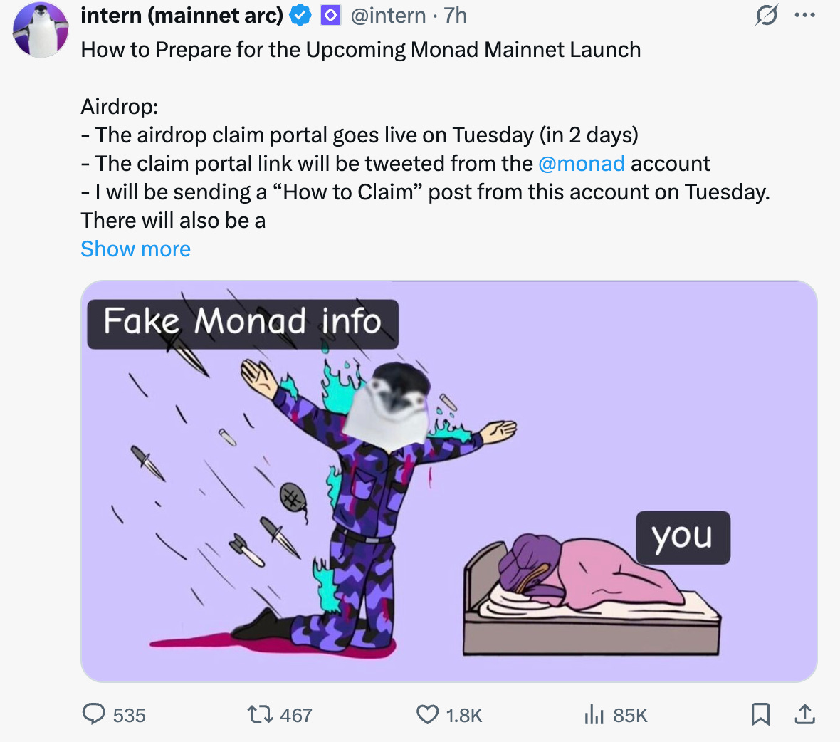 A good primer here by Intern on Monad’s airdrop claims and where to find relevant information