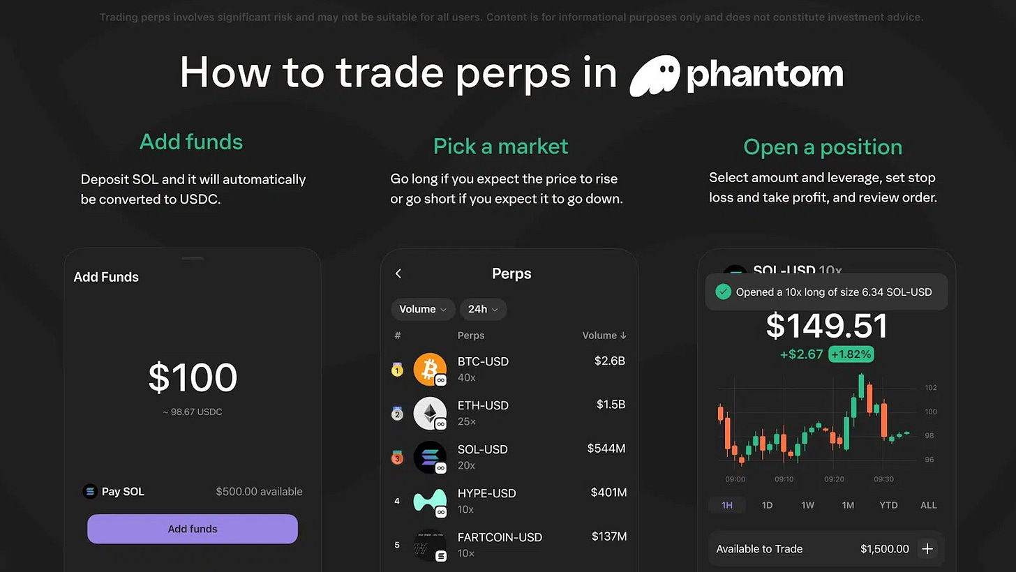The first wallet to integrate Hyperliquid perpetuals directly into its product was Phantom wallet 3 months ago. Available only to its mobile users, this integration really started the trend for different wallet providers to offer perpetual & leverage trading in one click to their users without the need to connect & interact with complicated onchain products.